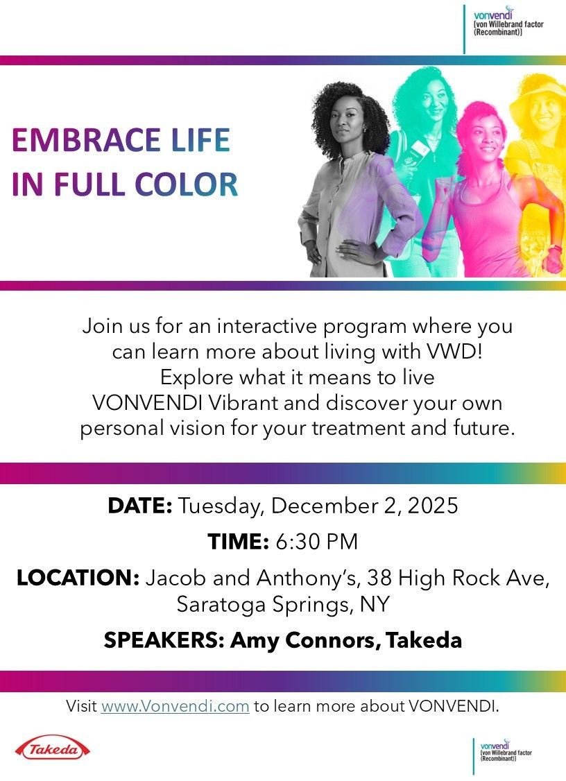Join us on 12/2 at Jacob & Anthony's in Saratoga for dinner and a discussion of living with VWD